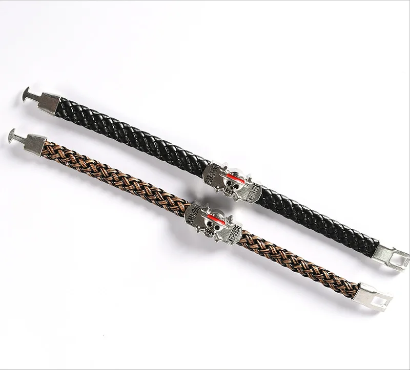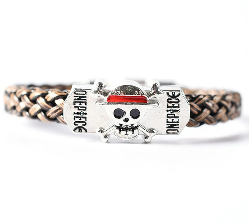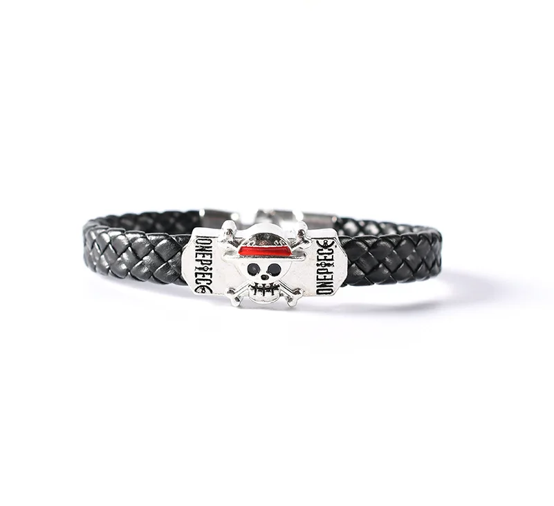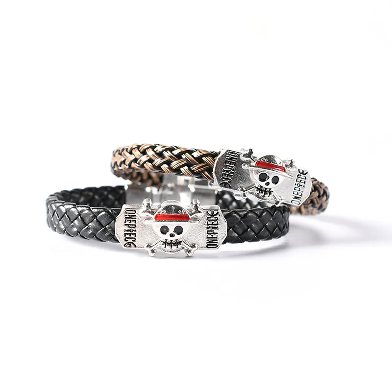 Anime One Piece Straw hat Skull bracelet Leather braided alloy bracelet Popular couples jewelry holiday gifts